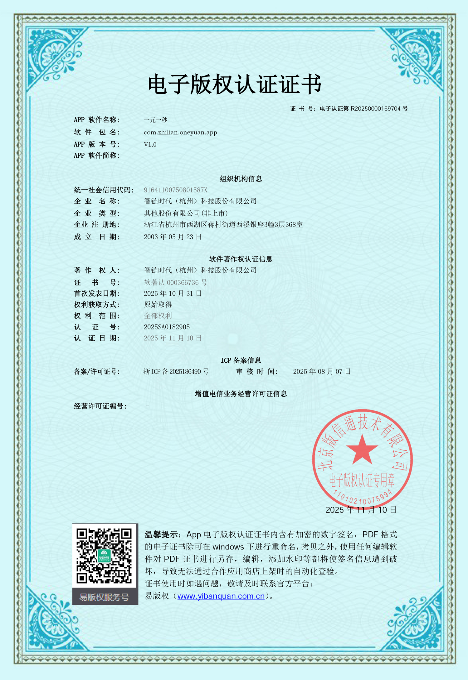 Copyright ©2025 智链时代(杭州)科技股份有限公司 All Rights Reserved企业资质